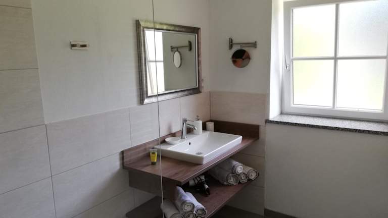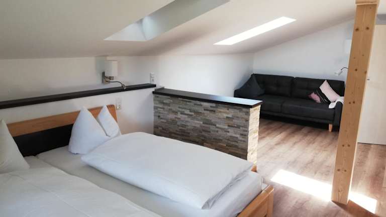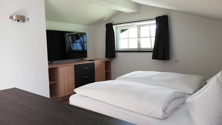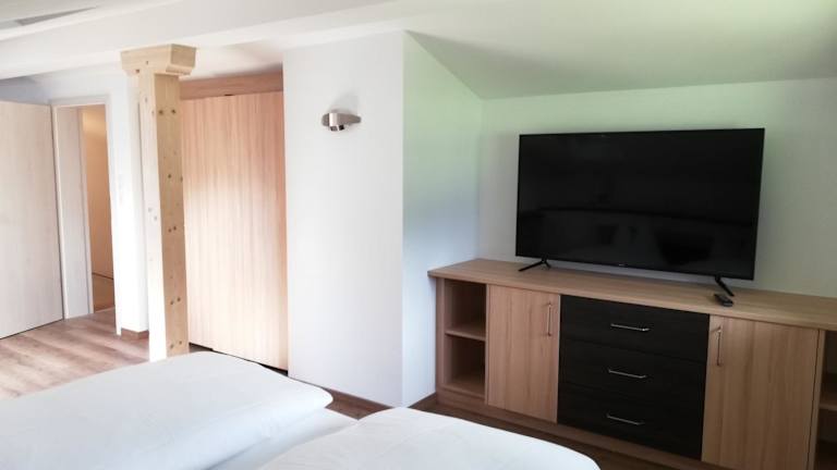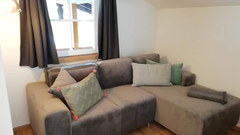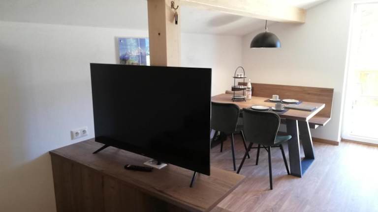 Die Ferienwohnung umfasst ein Schlafzimmer, ein Wohnzimmer mit Flachbild-TV, einen Balkon mit herrlichem Bergblick und ein Badezimmer mit Dusche. Die Küche ist mit Kühlschrank und Geschirrspüler ausgestattet. Handtücher und Bettwäsche werden bereitgestellt.