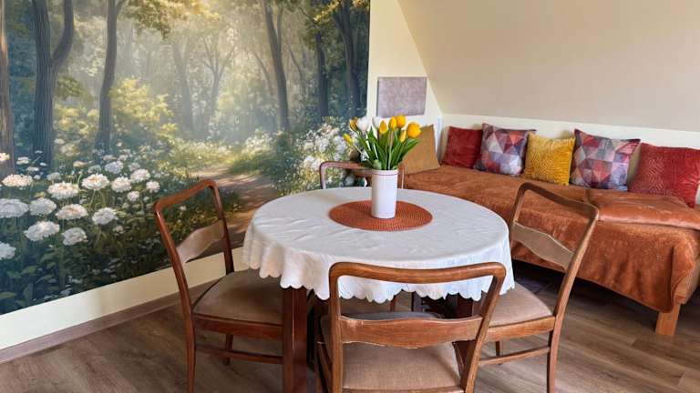 Die Ferienwohnung ist versehen mit einem Satelliten-Flachbild-TV und bietet eine komfortable und heimelige Atmosphäre.