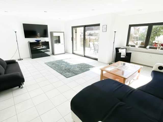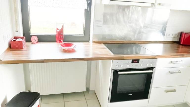 Die Ferienwohnung verfügt über drei Schlafzimmer, ein Wohnzimmer mit einem Kabel Flachbild-TV, eine gut ausgestattete Küche sowie ein Badezimmer mit Dusche und Badewanne. Handtücher und Bettwäsche sind ebenfalls Teil der Ausstattung. Die Terrasse und der Gartenblick tragen zur Bequemlichkeit bei.