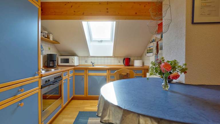 Die Ferienwohnung verfügt über ein Schlafzimmer, ein Wohnzimmer sowie eine gut ausgestattete Küchenzeile mit Kühlschrank und Ofen. Handtücher und Bettwäsche werden zur Verfügung gestellt.