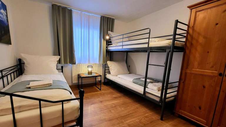 Die Ferienwohnung verfügt über 2 Schlafzimmer, 1 Badezimmer sowie über Bettwäsche und Handtücher. Zur Ausstattung gehören ein Flachbild-TV mit Satellitenkanälen, ein Essbereich, eine voll ausgestattete Küche sowie eine Terrasse mit Blick in den Garten.
