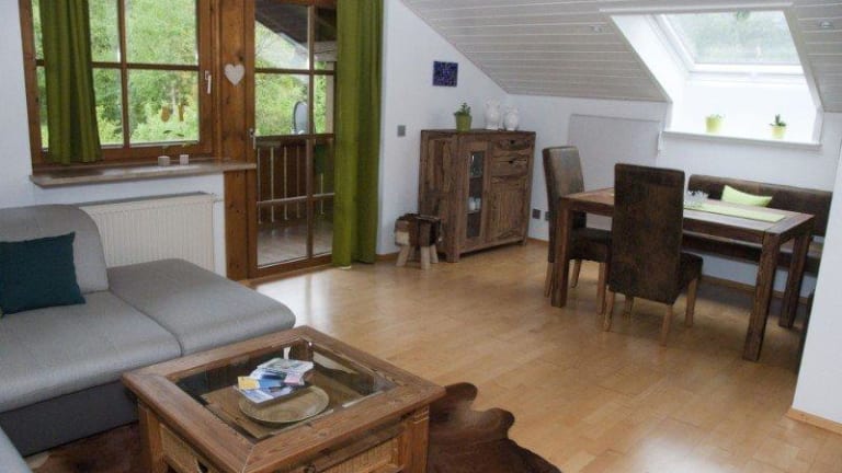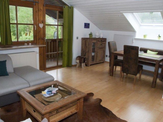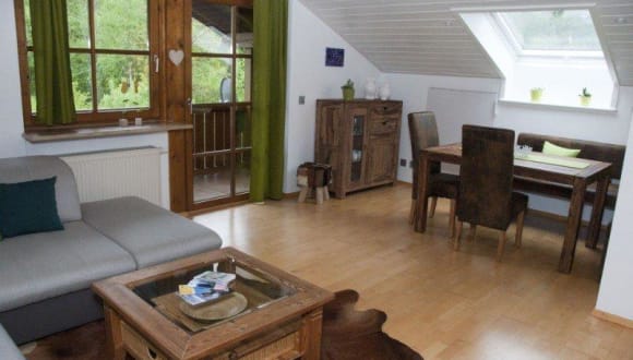 Die helle Dachgeschoss-Wohnung wurde erst Anfang 2014 grundlegend renoviert und mit viel Liebe zum Detail neu eingerichtet. Es soll Ihnen in den schönsten Tagen des Jahres an nichts fehlen und daher haben wir großen Wert auf eine hochwertige Ausstattung gelegt und kombinieren für Sie einen modernen Wohnstil mit alpenländischer Gemütlichkeit. Die ruhige Nichtraucher-Wohnung befindet sich im 2. OG und vom geräumigen Balkon aus genießen Sie einen faszinierenden Ausblick auf Kehlstein, Hoher Göll und Jenner. Die Wohnung ist 51qm groß und eignet sich gut für 2-3 Personen. Zu den Besonderheiten gehört der geräumige Wohn-/Essbereich mit gemütlicher Eckbank, großem Esstisch und Durchreiche zur Küche auf der einen Seite sowie 50 Zoll Flat-Screen Fernseher, Playstation 3, ipod Docking-Station und großer, ausziehbarer Sofalandschaft auf der anderen Seite. Ein modernes Bad nach neuestem Standard mit Wohlfühldusche, Fußbodenheizung, Handtuchwärmer und beheizbarem Spiegel lässt Sie gut in den Tag starten. Das Schlafzimmer bietet Ihnen ein neues Boxspring-Bett (1,80m x 2,00m) und einen zweiten Fernseher. Die separate Küche ist umfangreich ausgestattet, u.a. mit Geschirrspüler, Backofen, Ceran-Kochfeld mit 4 Platten und Dunstabzug und Mikrowelle. Der möblierte Balkon garantiert gemütliche und ruhige Stunden. In der gesamten Wohnung haben wir außerdem eine individuelle und variierbare Beleuchtung für Sie installiert. Kostenfreies Internet über WLAN können Sie gerne jederzeit nutzen, genauso wie Waschmaschine und Trockner im Keller des Hauses. Vor dem Haus haben wir einen kostenfreien Außen-Stellplatz für Sie reserviert.
