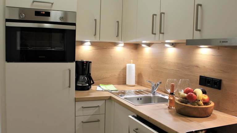 Die Wohneinheiten der Ferienwohnung sind ausgestattet mit einem Schlafsofa, einem Sitzbereich, einem Flachbild-TV mit Kabelkanälen sowie einer gut ausgestatteten Küche mit einem Essbereich. Des Weiteren stehen ein Safe und ein eigenes Badezimmer mit einem Haartrockner zur Verfügung. Zur Küchenausstattung gehören ein Kühlschrank, ein Geschirrspüler, ein Ofen, eine Kaffeemaschine und ein Wasserkocher.