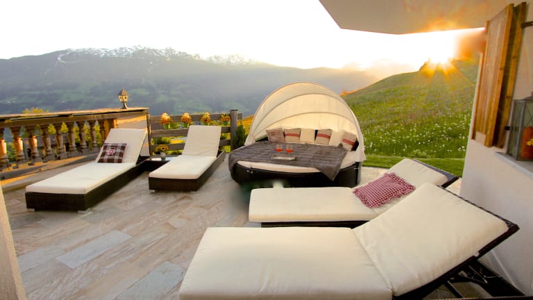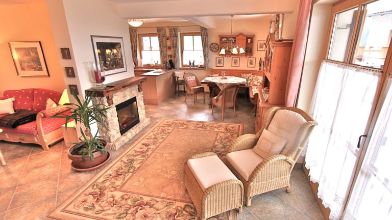 In 3 gemütlichen Doppelzimmern(alle mit TV/DVD) und 2 exklusiven Bädern (beide mit Holzeinbau-Möbeln) finden Sie Ruhe und Entspannung. An den Essbereich mit gemütlicher Eckbank schließt eine bestens ausgestattete, offene Küche an. Im Wohnbereich erwarten Sie Flat-Digital-TV(sat),DVD-player,DVD-Mediathek, Bibliothek,Gesellschaftsspiele,Lesesofa und ein 27"iMac mit freiem Internet-Zugang. Ein elektrischer Kamin sorgt für eine heimelige Atmosphäre.Ein Ausziehsofa bietet weitere Schlafmöglichkeiten. Wenn das Tal schon lange im Schatten liegt genießen Sie die große Terrasse mit Sitz-Garnitur, Liegestühlen mit Felldecken und sensationeller Aussicht ins Tal und über die Berge. Die Wohnung wird mit Fussbodenheizung beheizt, eine automatische Wohnraumlüftung sorgt für ein angenehmes Raumklima.Im UG befinden sich die TG, Skiständer u. ein Schuhraum mit Stiefelheizung.Ein Aufzug bringt Sie zur Ferienwohnung. Am Morgen verwöhnt Sie ein Brötchenservice mit frischen Semmeln. ...dem Himmel ganz nah! Herzlich willkommen im Bergkristall.
