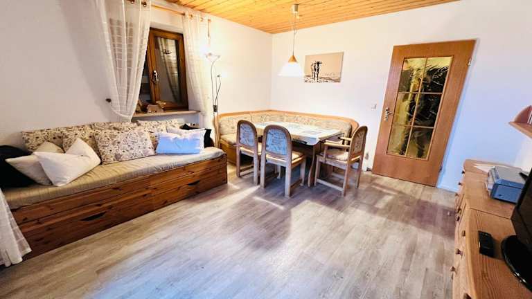 Die Ferienwohnung umfasst 2 Schlafzimmer, ein Wohnzimmer sowie eine voll ausgestattete Küche mit Kühlschrank und Essbereich. Zusätzlich steht ein Badezimmer zur Verfügung. Zur Unterhaltung gibt es einen TV mit Satellitenkanälen, einen DVD-Player sowie einen CD-Player.