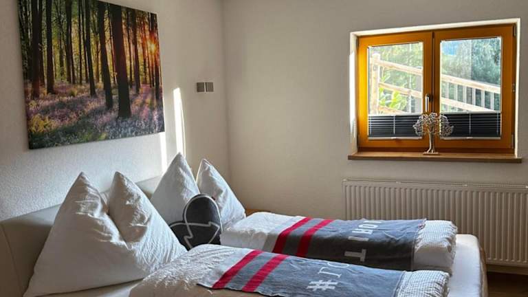 Die Ferienwohnung umfasst ein Schlafzimmer sowie ein Wohnzimmer. Die gut ausgestattete Küche verfügt über einen Kühlschrank und einen Geschirrspüler. Des Weiteren sind ein Bad mit Dusche sowie ein TV vorhanden. Handtücher und Bettwäsche werden zur Verfügung gestellt.
