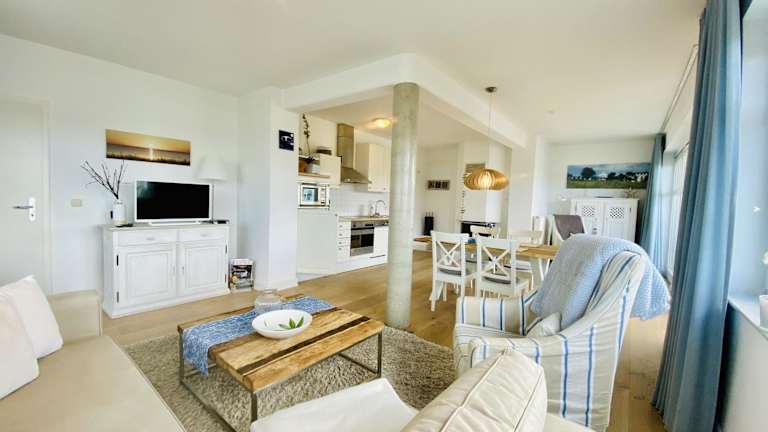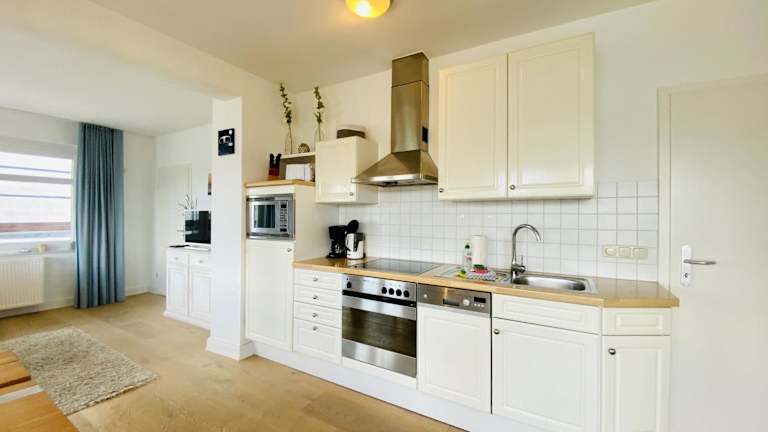 Die Ferienwohnung verfügt über ein Schlafzimmer, ein Wohnzimmer mit TV sowie eine gut ausgestattete Küche, die mit Kühlschrank und Geschirrspüler ausgestattet ist. Zusätzlich bietet sie ein Badezimmer mit Dusche. Handtücher und Bettwäsche stehen zur Verfügung.