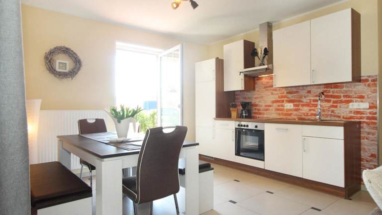 Die Ferienwohnung ist mit einer voll ausgestatteten Küche ausgestattet, was die Zubereitung eigener Mahlzeiten ermöglicht. Grillmöglichkeiten stehen ebenfalls zur Verfügung.