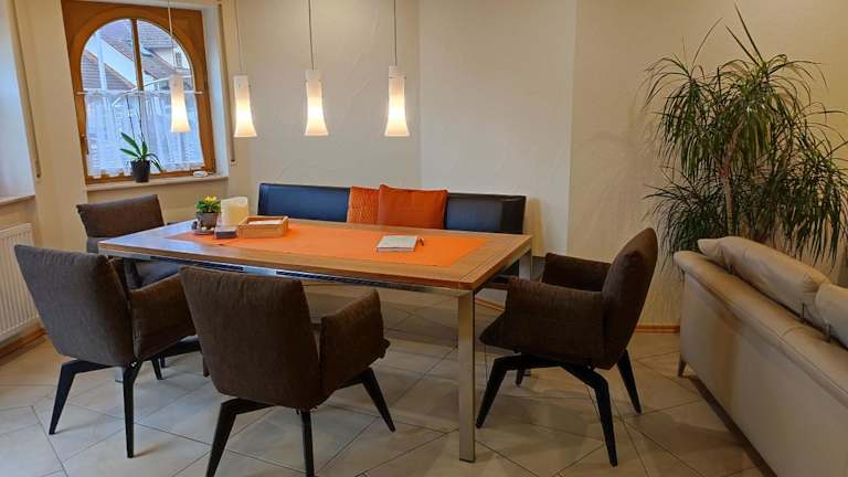 Die Ferienwohnung Bleifuss in Altenbuch im Spessart bietet einen angenehmen Aufenthalt inmitten der Natur. Das Apartment verfügt über alle Annehmlichkeiten, die Sie für einen komfortablen Urlaub benötigen, darunter zwei Schlafzimmer, ein gemütliches Wohnzimmer und eine voll ausgestattete Küche. Kostenfreies WLAN und Privatparkplätze stehen ebenfalls zur Verfügung. Genießen Sie die schöne Terrasse und den Garten und erkunden Sie die Umgebung des Spessarts.