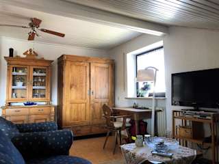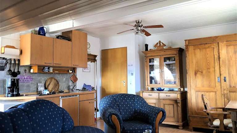 Die Ferienwohnung besteht aus einem Schlafzimmer, einem Wohnzimmer und einer voll ausgestatteten Küche mit Kühlschrank und Kaffeemaschine. Das Badezimmer ist mit einer Dusche und einem Haartrockner ausgestattet. Handtücher und Bettwäsche werden bereitgestellt.