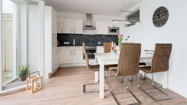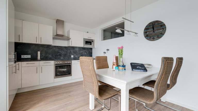 Die Ferienwohnung verfügt über eine gut ausgestattete Küche mit einem Kühlschrank, einem Geschirrspüler und einem Ofen. Zu den Annehmlichkeiten gehören zudem ein TV, ein Badezimmer mit Badewanne und Haartrockner sowie eine Terrasse. Die Unterkunft ist für Gäste mit Allergien geeignet, da alle öffentlichen und privaten Bereiche Nichtraucherzonen sind.