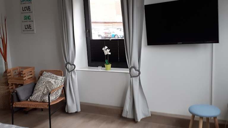 Die Ferienwohnung umfasst 1 Schlafzimmer und eine voll ausgestattete Küche mit Kühlschrank und Geschirrspüler. Zudem bietet sie ein Badezimmer mit Dusche und Haartrockner. Handtücher und Bettwäsche werden zur Verfügung gestellt.