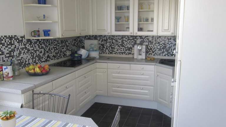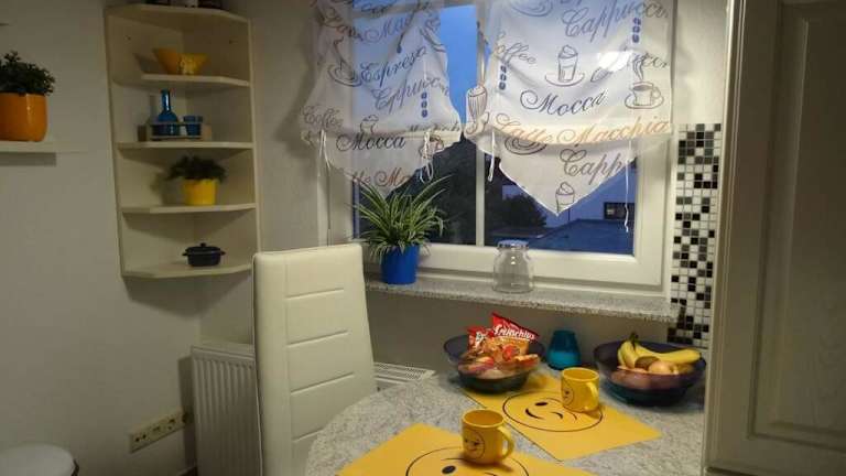 Die Ferienwohnung ist mit einer voll ausgestatteten Küche ausgestattet, die einen Kühlschrank und eine Kaffeemaschine umfasst. Es gibt keine spezifischen Informationen zu Verpflegungsmöglichkeiten vor Ort.