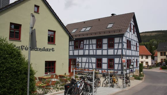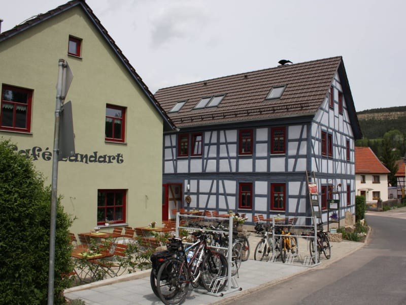 Die Ferienwohnung Café Landart befindet sich in Plaue in der Region Thüringen, umgeben von einer idyllischen Natur. Es gibt Möglichkeiten zum Wandern und Skifahren in der unmittelbaren Umgebung der Unterkunft. Die Städte Gotha und Erfurt sind gut erreichbar, wobei die Messe Erfurt 34 km entfernt liegt. Der nächstgelegene Flughafen ist der Flughafen Erfurt-Weimar, ebenfalls 34 km entfernt.