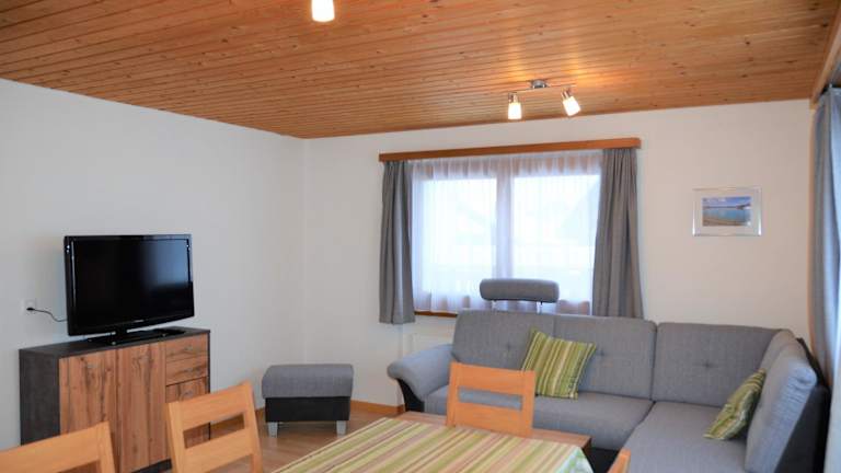 Die Ferienwohnung bietet einen gemütlichen Sitzbereich und ist mit einem Satelliten Flachbild-TV ausgestattet. Das eigene Badezimmer verfügt über eine Dusche und einen Haartrockner.