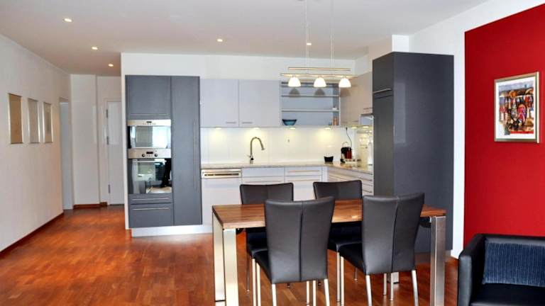 Die Ferienwohnung ist mit einem Schlafzimmer, einem TV mit Kabelkanälen und einer voll ausgestatteten Küche ausgestattet. Die Küche beinhaltet einen Kühlschrank, Geschirrspüler, Waschmaschine, Ofen und Mikrowelle. Handtücher und Bettwäsche werden bereitgestellt.