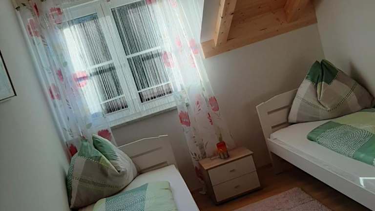 Die Ferienwohnung ist mit zwei Schlafzimmern und einem Badezimmer ausgestattet. Weiterhin stehen Bettwäsche und Handtücher bereit. Zur Ausstattung gehören ein Flachbild-TV mit Satellitenkanälen, ein Essbereich sowie eine voll ausgestattete Küche.