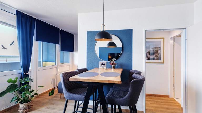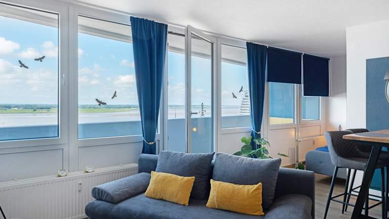 Die Ferienwohnung Clara befindet sich in Bremerhaven, nur 500 m vom Weser-Strandbad entfernt. In der Umgebung gibt es zahlreiche Möglichkeiten zum Wandern und Velofahren sowie interessante Attraktionen wie das Klimahaus Bremerhaven und das Technikmuseum 'U-Boot Wilhelm Bauer'. Der nächste Flughafen, Bremen, ist rund 66 km entfernt.