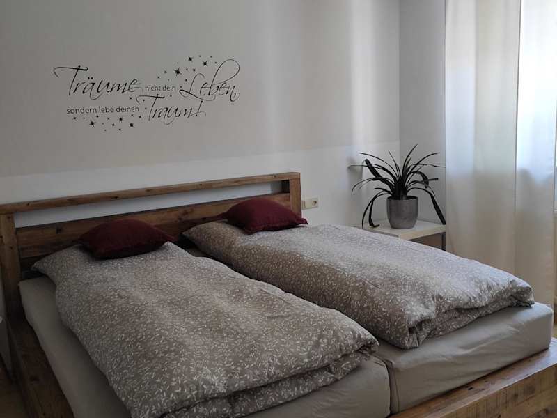 Die Ferienwohnung Daheim umfasst ein Schlafzimmer, ein Wohnzimmer sowie ein gut ausgestattetes Badezimmer mit Badewanne oder Dusche. Des Weiteren stehen ein Flachbild-TV, eine Küche mit Kühlschrank und Geschirrspüler sowie eine Terrasse mit Gartenblick zur Verfügung. Handtücher und Bettwäsche werden bereitgestellt.