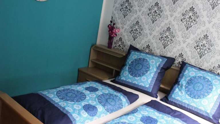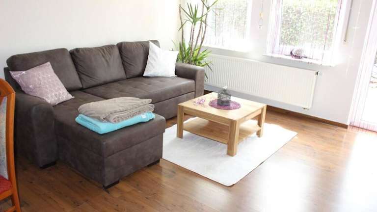Die Ferienwohnung besteht aus 2 Schlafzimmern, einem Wohnzimmer und einer voll ausgestatteten Küche mit Kühlschrank und Kaffeemaschine. Ein Badezimmer mit Badewanne und Haartrockner ist ebenfalls vorhanden. Handtücher und Bettwäsche werden bereitgestellt.