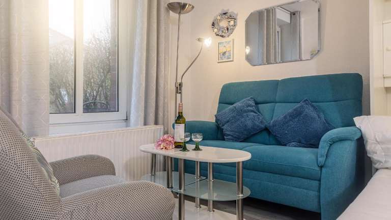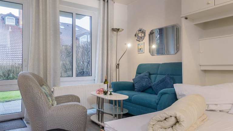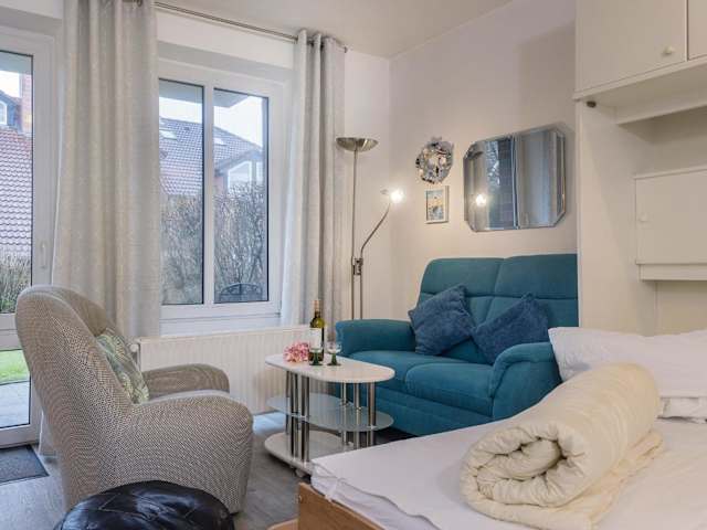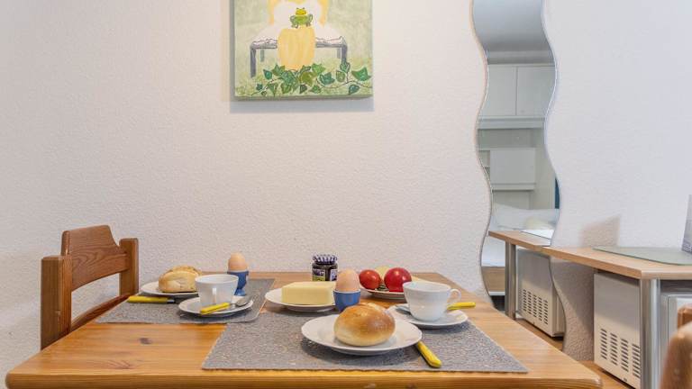 Die Ferienwohnung ist eingerichtet mit einem Wohnzimmer und einer voll ausgestatteten Küche, die über einen Kühlschrank und einen Ofen verfügt. Des Weiteren sind ein TV, ein DVD-Player sowie ein CD-Player vorhanden.
