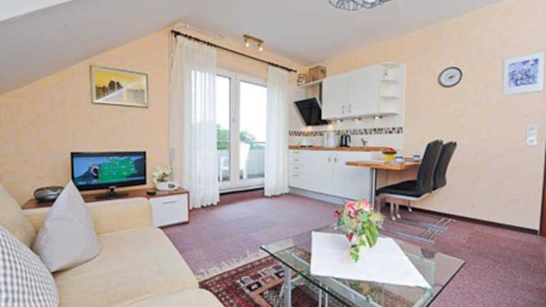 Die Ferienwohnung beinhaltet ein Schlafzimmer und ist ausgestattet mit einem Flachbild-TV mit Kabelkanälen sowie einer voll ausgestatteten Küche, die unter anderem einen Kühlschrank bietet.