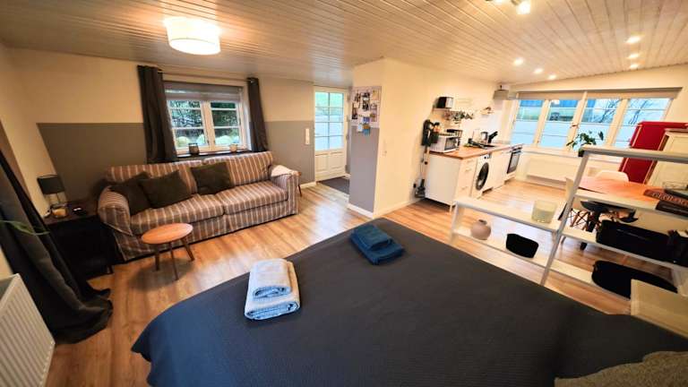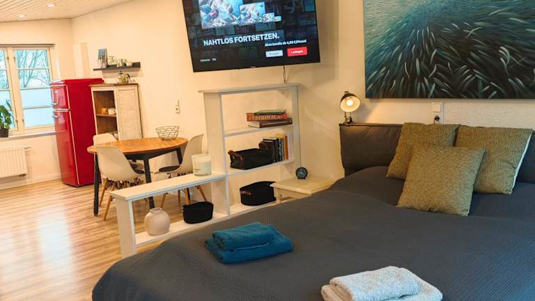 Die Ferienwohnung verfügt über 1 Schlafzimmer, ein Wohnzimmer mit einem Flachbild-TV und eine gut ausgestattete Küche, die mit einem Kühlschrank und einem Geschirrspüler eingerichtet ist. Zudem beinhaltet die Unterkunft 1 Badezimmer mit einer Dusche. Handtücher und Bettwäsche werden bereitgestellt.