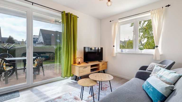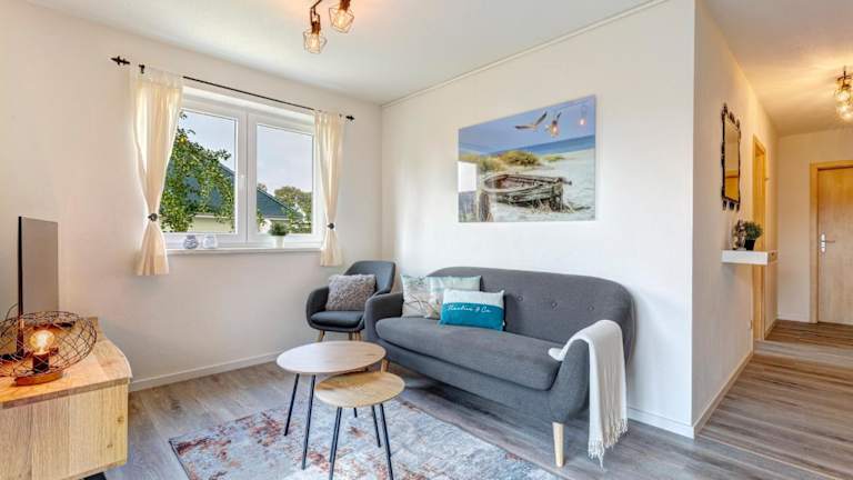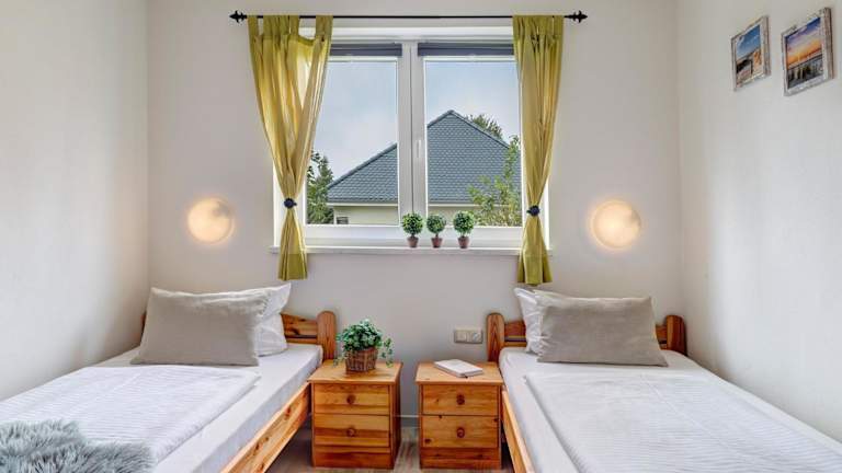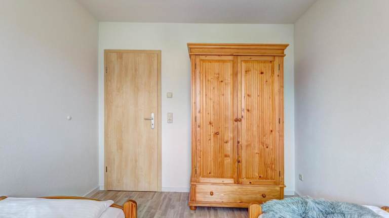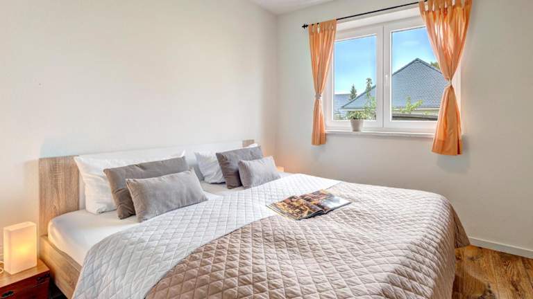 Die Ferienwohnung beinhaltet zwei Schlafzimmer, eine voll ausgestattete Küche mit Kühlschrank und Geschirrspüler sowie ein Badezimmer mit Dusche und Haartrockner. Handtücher und Bettwäsche werden bereitgestellt.