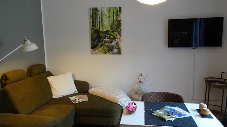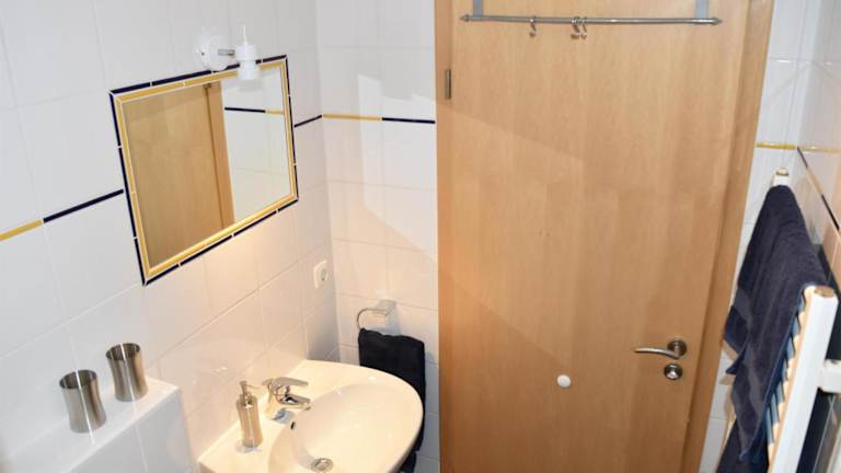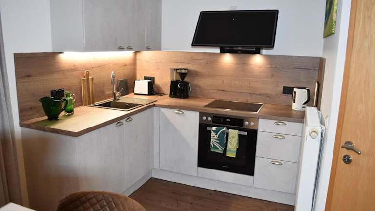 Die Ferienwohnung besteht aus einem Schlafzimmer, einem Wohnzimmer und einer voll ausgestatteten Küchenzeile mit Kühlschrank und Kaffeemaschine. Des Weiteren bietet die Unterkunft ein Badezimmer mit Dusche und Haartrockner. Handtücher und Bettwäsche werden bereitgestellt.