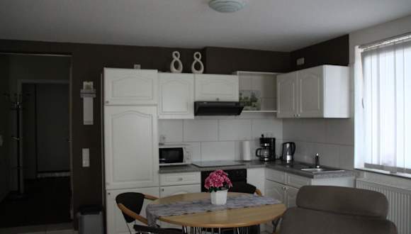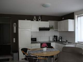 Die Ferienwohnung ist mit einer voll ausgestatteten Küche mit Kühlschrank und Ofen ausgestattet. Grillmöglichkeiten stehen ebenfalls zur Verfügung, um im heimeligen Garten zu speisen.