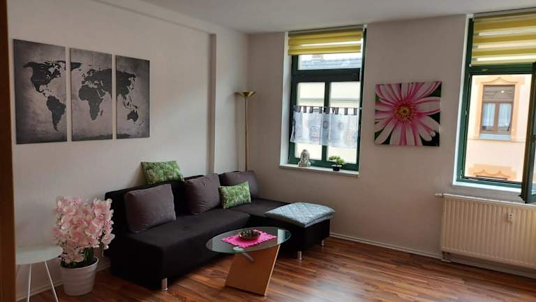 Die Ferienwohnung Eddi befindet sich in Reichenbach im Vogtland, 5,6 km von der Göltzschtalbrücke und 29 km von der Deutschen Raumfahrtausstellung entfernt. Auch der Tierpark Gera ist mit 42 km in der Nähe.