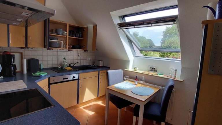 Die Ferienwohnung ist ausgestattet mit 2 Schlafzimmern, einer Küchenzeile, die mit einem Kühlschrank und einem Geschirrspüler versehen ist. Zudem bietet sie 1 Badezimmer mit Dusche, Haartrockner und Waschmaschine. Handtücher und Bettwäsche sind in der Ferienwohnung vorhanden.