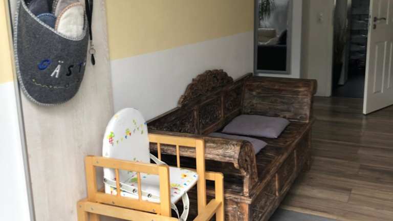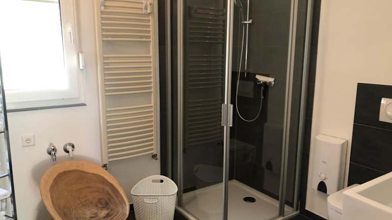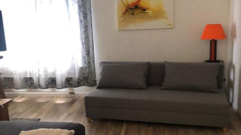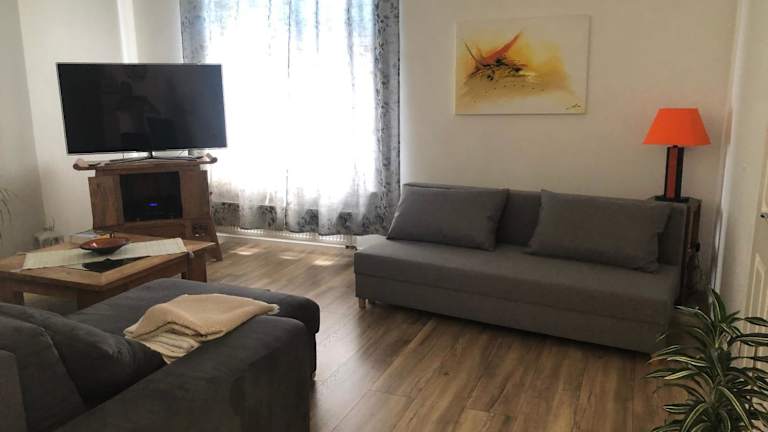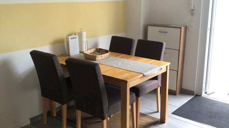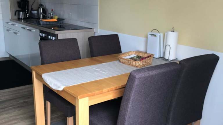 Die Ferienwohnung verfügt über ein Schlafzimmer, ein Wohnzimmer mit Flachbild-TV, eine gut ausgestattete Küche mit Kühlschrank und Ofen sowie ein Badezimmer mit Dusche. Handtücher und Bettwäsche werden bereitgestellt. Die Terrasse mit Gartenblick sorgt für eine heimelige Atmosphäre.