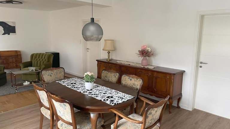 Die Ferienwohnung umfasst zwei Schlafzimmer, ein Wohnzimmer sowie eine voll ausgestattete Küche mit Geschirrspüler und Kaffeemaschine. Zudem gibt es ein Badezimmer mit Dusche und Haartrockner. Handtücher und Bettwäsche werden bereitgestellt, und die Unterkunft bietet kostenloses WLAN sowie einen Balkon. Alle Zimmer sind Nichtraucherzimmer.