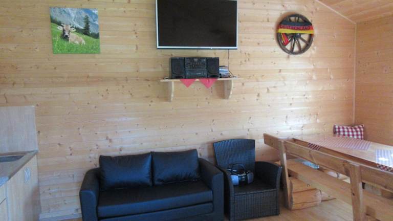 Nach einem Tag beim Skifahren oder Velofahren können die Gäste im Garten entspannen oder die gemeinsame Lounge nutzen.