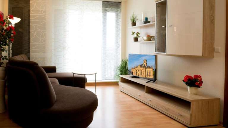 Die Ferienwohnung verfügt über ein Schlafzimmer und ist ausgestattet mit einem Flachbild-TV mit Satellitenkanälen sowie einer voll ausgestatteten Küche. Zu den Küchengeräten gehören ein Kühlschrank, ein Geschirrspüler, eine Waschmaschine, ein Ofen und eine Mikrowelle. Zudem stehen den Gästen Handtücher und Bettwäsche zur Verfügung. Der Balkon lädt zum Entspannen ein. WLAN ist kostenlos verfügbar.
