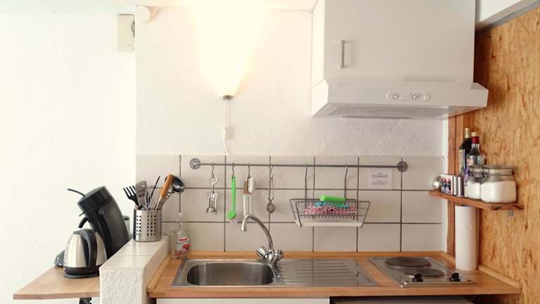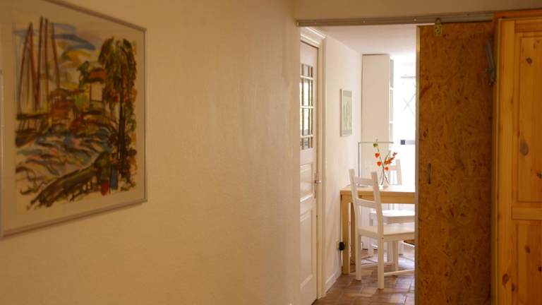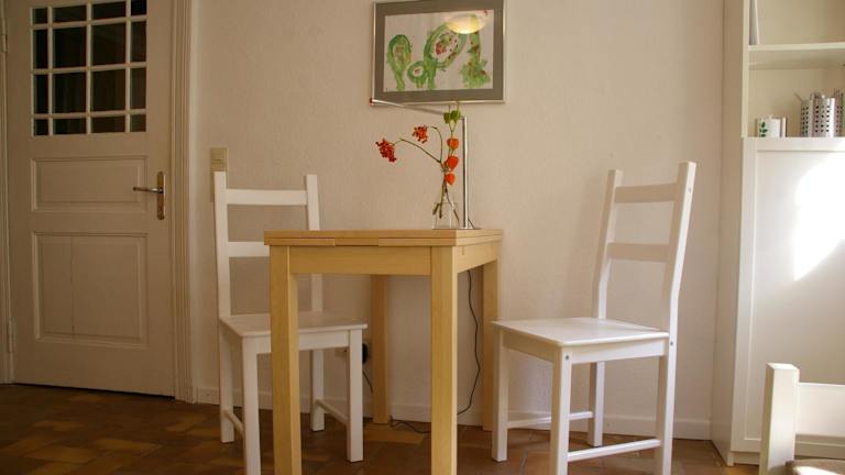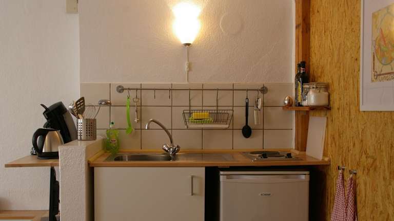 Die Ferienwohnung verfügt über ein Schlafzimmer, ein Wohnzimmer mit einem Sitz- und Essbereich, eine Küchenzeile mit Kühlschrank, Ofen und Herdplatte sowie ein Badezimmer mit Dusche und Badewanne. Zudem werden Handtücher und Bettwäsche zur Verfügung gestellt.