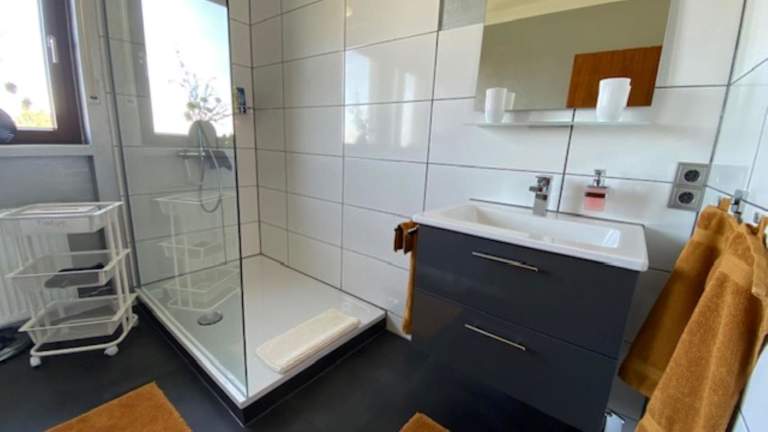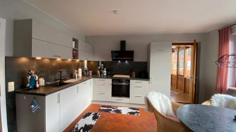 Die Ferienwohnung verfügt über zwei Schlafzimmer und ist mit einem Flachbild-TV sowie einer gut ausgestatteten Küche mit Kühlschrank und Geschirrspüler ausgestattet. Es gibt ein Badezimmer mit Dusche. Handtücher und Bettwäsche werden bereitgestellt. Die Unterkunft ist rauchfrei und bietet Gartenmöbel.