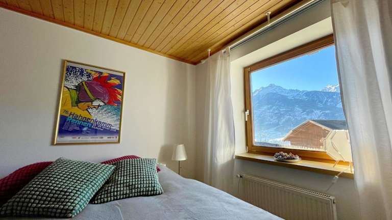 Die Ferienwohnung bietet zwei Schlafzimmer, ein Badezimmer sowie eine Küche, die mit allem Notwendigen ausgestattet ist. Die Gäste können sich in heimeliger Atmosphäre entspannen und den Gartenblick von der Terrasse geniessen.