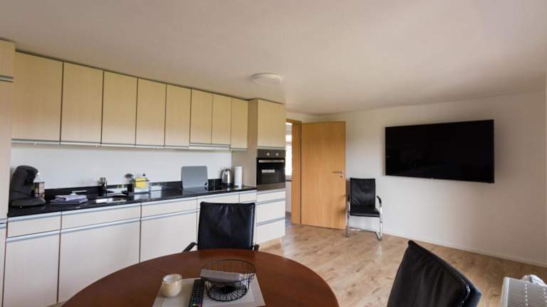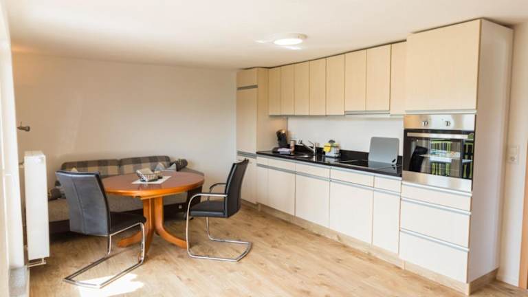 Die Ferienwohnung verfügt über zwei Schlafzimmer und ein Wohnzimmer sowie ein Badezimmer mit Dusche. Zur Ausstattung gehören ein Flachbild-TV und eine gut ausgestattete Küche mit Kühlschrank und Geschirrspüler. Die Unterkunft stellt Handtücher und Bettwäsche zur Verfügung.
