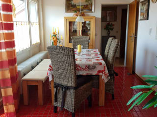 Die 4-Sterne Ferienwohnung (98m²) befindet sich im Dachgeschoss eines 5-Familien-Wohnhauses in Ortsrandlage von Langenargen und ist mit 3 Schlafzimmern für eine Belegung mit 2-6 Personen geeignet. Sie liegt in einer verkehrsberuhigte Zone am Landschaftsschutzgebiet in der Nähe zum BMK-Yachthafen und Naturbadestrand. Zur nächsten Einkaufmöglichkeit sind es ca. 5 Gehminuten. Ausstattung: Garage, Fahrradabstellplatz voll eingerichtete Küche mit Spülmaschine und Kaffeevollautomat Bad mit großer Regen-Dusche, 2 Waschbecken und WC, Gäste-WC mit Waschbecken Schlafbereich: Parkettfußböden, Allergikerbettzeug, Bettwäsche, Kinderreisebett Wohnbereich: Leder-Eckcouch, Fernsehsessel, Essgruppe, Kinderhochstuhl Unterhaltung: Stereoanlage, digitales SAT-TV, Blu-Ray Player, Internet LAN und W-LAN, große Auswahl an Gesellschaftsspielen und Büchern Dachterrasse: Markise, Terrassenmöbel Waschmaschine und Trockner Fahrräder 24" bis 28" Besondere Merkmale: - 3 Schlafzimmer - ruhige Lage - familienfreundlich - Bettwäsche und Handtücher ohne Aufpreis - Nichtraucherwohnung - keine Haustiere - allergikergeeignet - Kinderreisebett vorhanden Aufteilung: 1 Bad 1 Gäste-WC 3 Schlafzimmer (2 x Doppelbetten und 1 x mit 2 Einzelbetten) 1 Küche 1 Wohnzimmer mit Leder-Eckcouch und Fernsehsessel 1 Essdiele große Dachterrasse Preis: je nach Saison und Personenzahl: 95,- € bis 170,- € Mindestaufenthalt 5 Übernachtungen An-/Abreisetag: Freitag, Samstag bei Buchung unter 7 Tagen: 100,00 € Aufschlag Kurtaxe: Erwachsene 3,15 €/Tag, Kinder bis 16 Jahre frei Von November bis Februar fällt keine Kurtaxe an. Folgende Leistungen sind im Mietpreis enthalten: - Kosten für die Endreinigung - Bettwäsche und Handtücher - Fahrradnutzung - Waschmaschinen- und Trocknerbenutzung - Telefonkosten ins deutsche Festnetz - Internetzugang LAN und W-LAN - Garagennutzung Rabatte: - Frühbucherrabatt mind. 6 Monate im Voraus: 5% auf den Mietpreis - Stammkundenbonus ab 3-maligem Aufenthalt von mind. 1 Woche - Langfristbuchung mind. 4 Wochen zu Sonderkonditionen