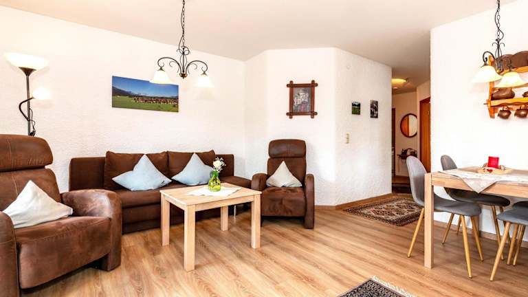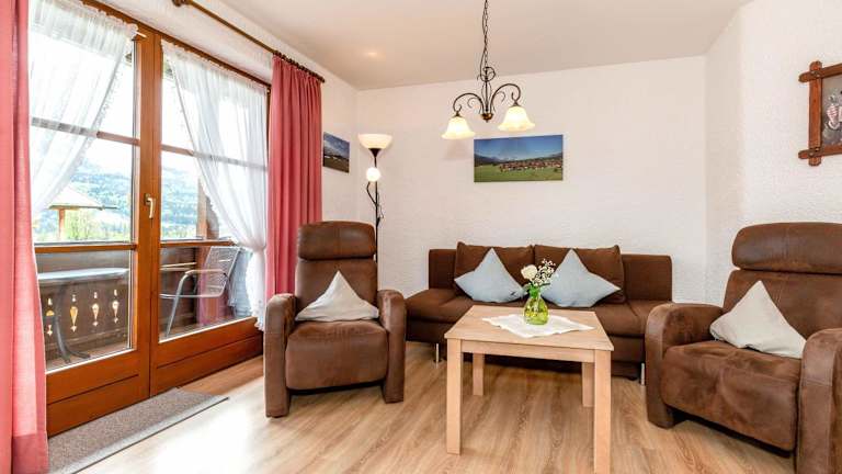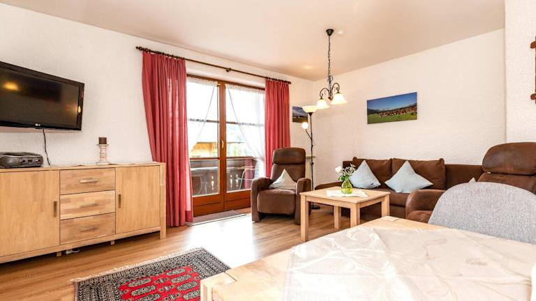 Die Ferienwohnung verfügt über ein Schlafzimmer, ein Wohnzimmer und bietet einen Balkon mit Bergblick. Die Ausstattung umfasst einen Flachbild-TV, eine gut ausgestattete Küche mit Kühlschrank und Geschirrspüler sowie ein Badezimmer mit Dusche. Handtücher und Bettwäsche werden bereitgestellt.
