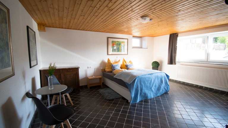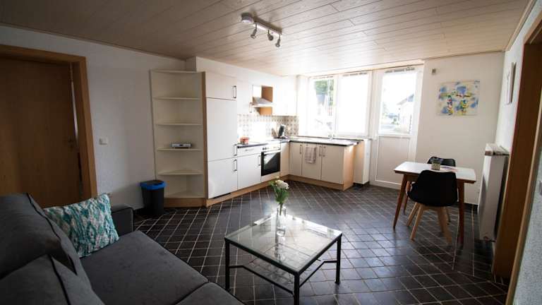 Die Ferienwohnung besteht aus einem Schlafzimmer, einem Wohnzimmer, einer voll ausgestatteten Küche mit Kühlschrank und Kaffeemaschine sowie einem Badezimmer mit Dusche und Haartrockner. Handtücher und Bettwäsche werden bereitgestellt.