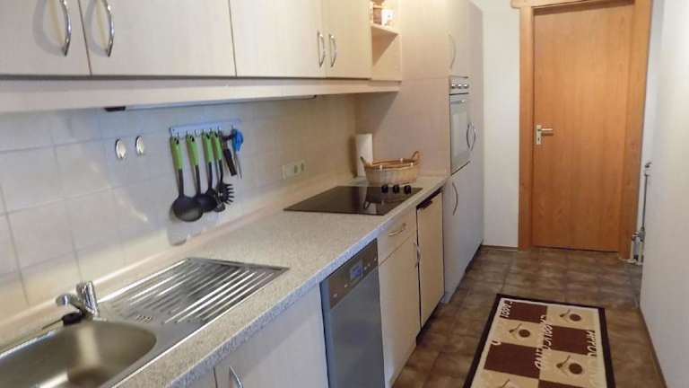Die Ferienwohnung besteht aus 1 Schlafzimmer, einem Wohnzimmer sowie einer voll ausgestatteten Küche mit Geschirrspüler und Wasserkocher. Ein Badezimmer mit Dusche ist ebenfalls vorhanden. Handtücher und Bettwäsche werden bereitgestellt.