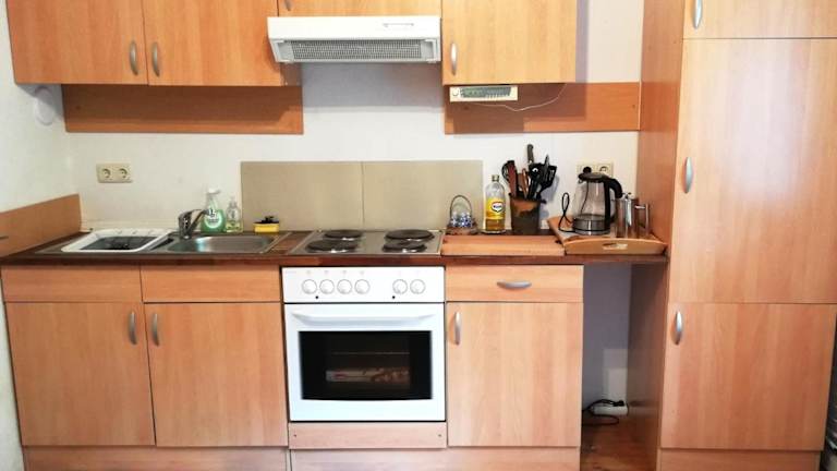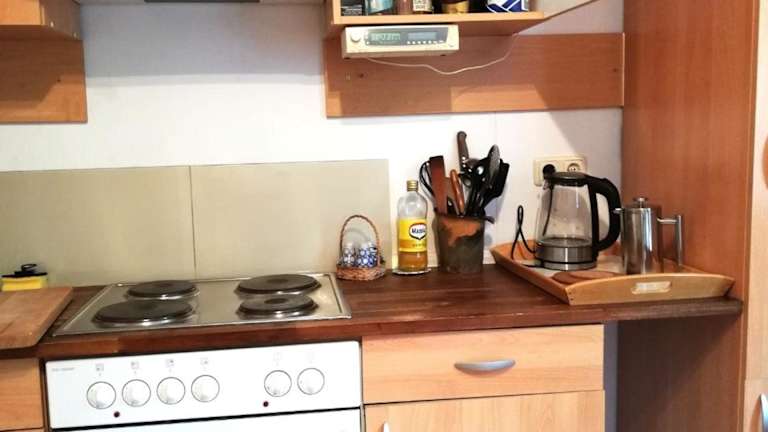 Die Ferienwohnung besteht aus einem Schlafzimmer, einem Wohnzimmer und einer voll ausgestatteten Küche mit Kühlschrank und Kaffeemaschine. Das Badezimmer verfügt über eine Dusche und einen Haartrockner. Handtücher und Bettwäsche werden bereitgestellt. Die Unterkunft bietet zudem Familienzimmer und Zustellbetten für Kinder an.