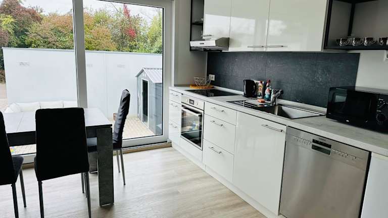 FerienWohnung Gästehaus Merzig NEUBAU ist eine helle und moderne Unterkunft im Neubau mit einer einladenden Terrasse und Blick auf den Fluss. Diese Ferienwohnung bietet alle Bequemlichkeiten für einen angenehmen Aufenthalt.