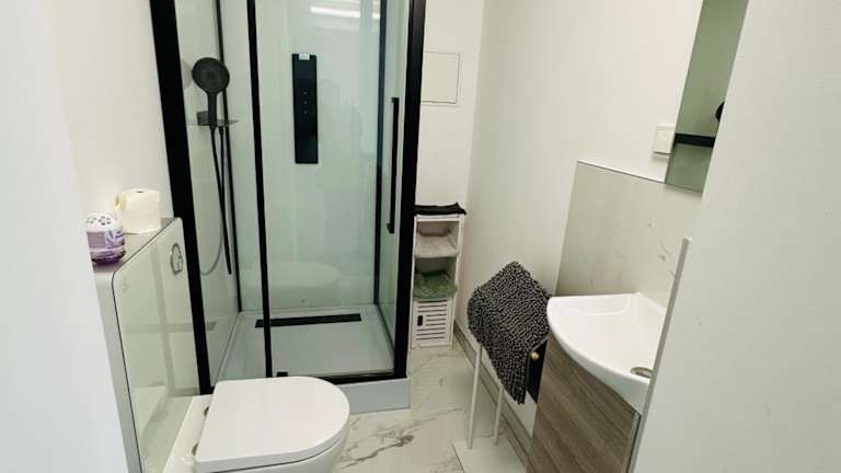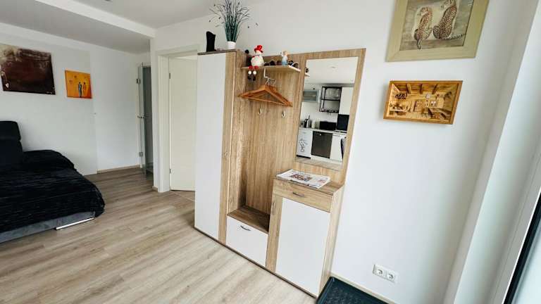 Die Ferienwohnung bietet 1 Schlafzimmer, ein Wohnzimmer und ist ausgestattet mit einem Flachbild-TV und einer gut ausgestatteten Küche, die über einen Kühlschrank und einen Geschirrspüler verfügt. Ein Badezimmer mit Dusche ist ebenfalls vorhanden. Handtücher und Bettwäsche werden bereitgestellt.