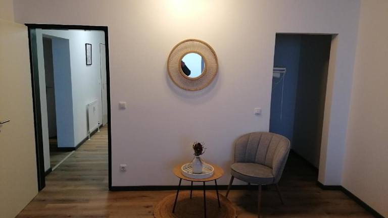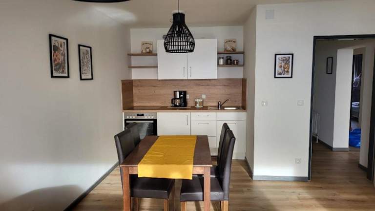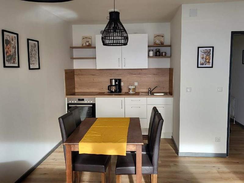 Die Ferienwohnung bietet Platz in zwei Schlafzimmern und verfügt über eine gut ausgestattete Küchenzeile mit einem Kühlschrank und einem Ofen. Weiterhin gibt es einen Flachbild-TV, einen gemütlichen Sitzbereich sowie ein Badezimmer mit Dusche. Handtücher und Bettwäsche sind ebenfalls in der Unterkunft vorhanden.