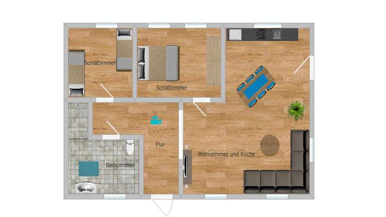 Die Ferienwohnung verfügt über zwei Schlafzimmer und ein Badezimmer. Zur Ausstattung gehören Bettwäsche, Handtücher, ein Flachbild-TV, ein Essbereich sowie eine voll ausgestattete Küche. Eine Terrasse mit wunderschönem Bergblick rundet die Bequemlichkeit der Unterkunft ab.