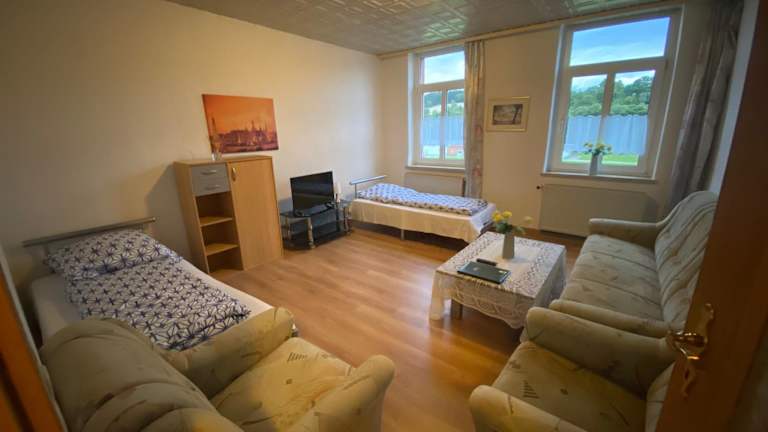 Die Ferienwohnung Goldener Drache befindet sich in Adorf, nur wenige Kilometer vom König Albert Theater und der Musikhalle Markneukirchen entfernt. Die Umgebung bietet eine ruhige Atmosphäre mit Gartenausblick und einfachem Zugang zu verschiedenen Sehenswürdigkeiten wie der Deutschen Raumfahrtausstellung und der Göltzschtalbrücke.